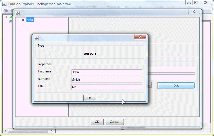 $ java -jar run-oddjob.jar -cp examples/classes -f examples/devguide/helloperson2.xml Hello Mr Smith.