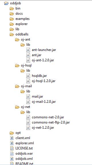 Oddballs extends the above features of Oddjob modularity by defining a recognised directory structure for deploying a set of job classes and their dependent libraries.