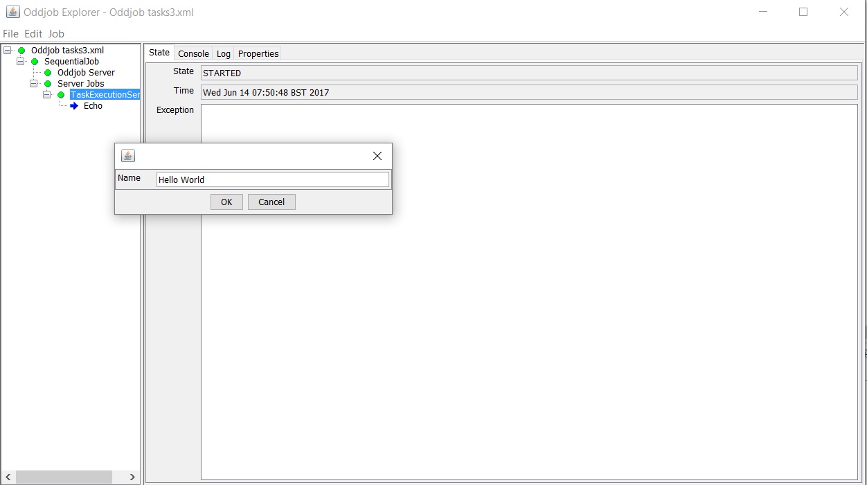 The idea of a Task was introduced in Oddjob 1.5 as a way to get round the limitations of running jobs remotely with different properties. Doing this locally has always been relatively simple with input but remotely required waiting for a property to be set.