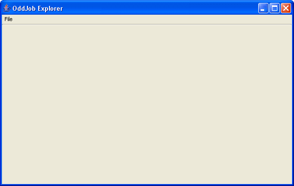 You will be presented with a rather uninspiring empty frame with a single File menu item. This is Oddjob Explorer.