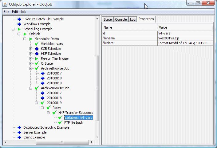 Oddjob is able record snapshot of the state of it's children. It achieves this using a archive job. This will capture a 'silhouette' of it's child's state and properties, and it's children's children, so long as the are in the current Oddjob Session. It won't capture the state of remote jobs or jobs in a nested Oddjob.